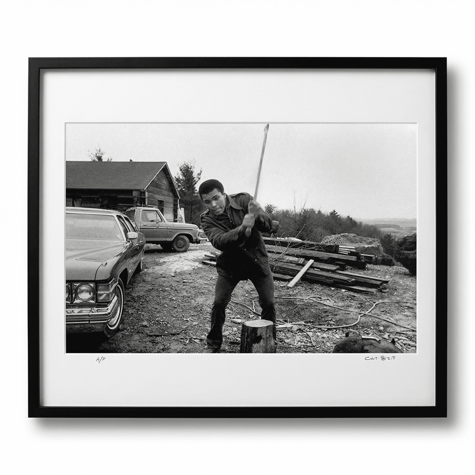 Ali Chopping Wood – This photo of Muhammad Ali was captured by Chris when Ali was at his training camp at Deer Lake, Pennsylvania 1973. Ali used Deer Camp to train and prepare for a number of his most famous fights: “The Rumble in the Jungle”, “Ali vs Frazier II”, and “Ali vs Foreman”.