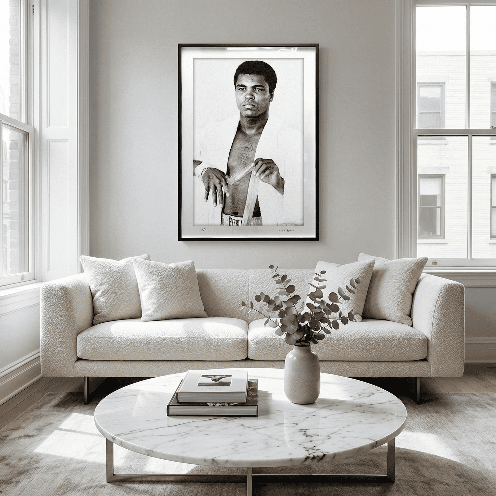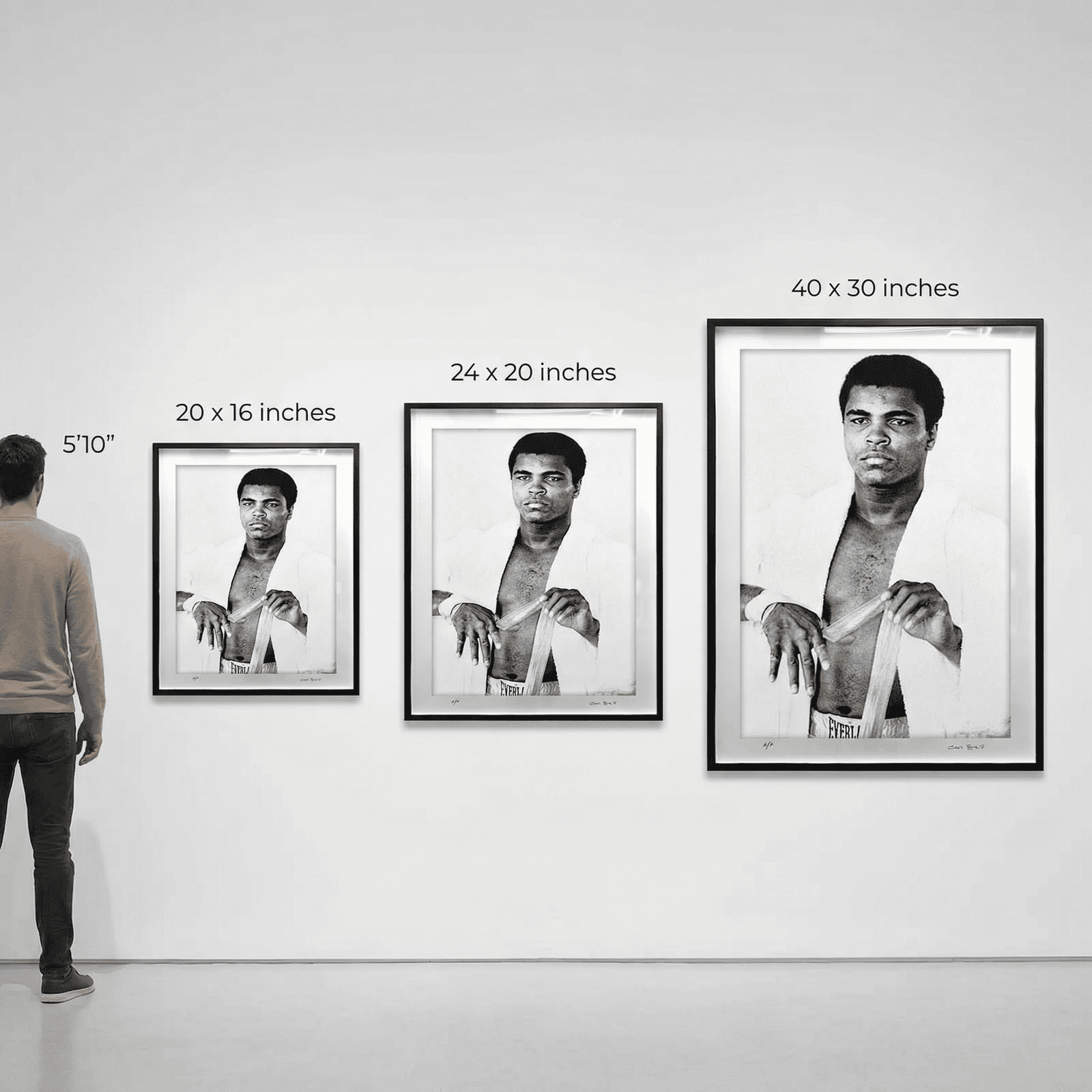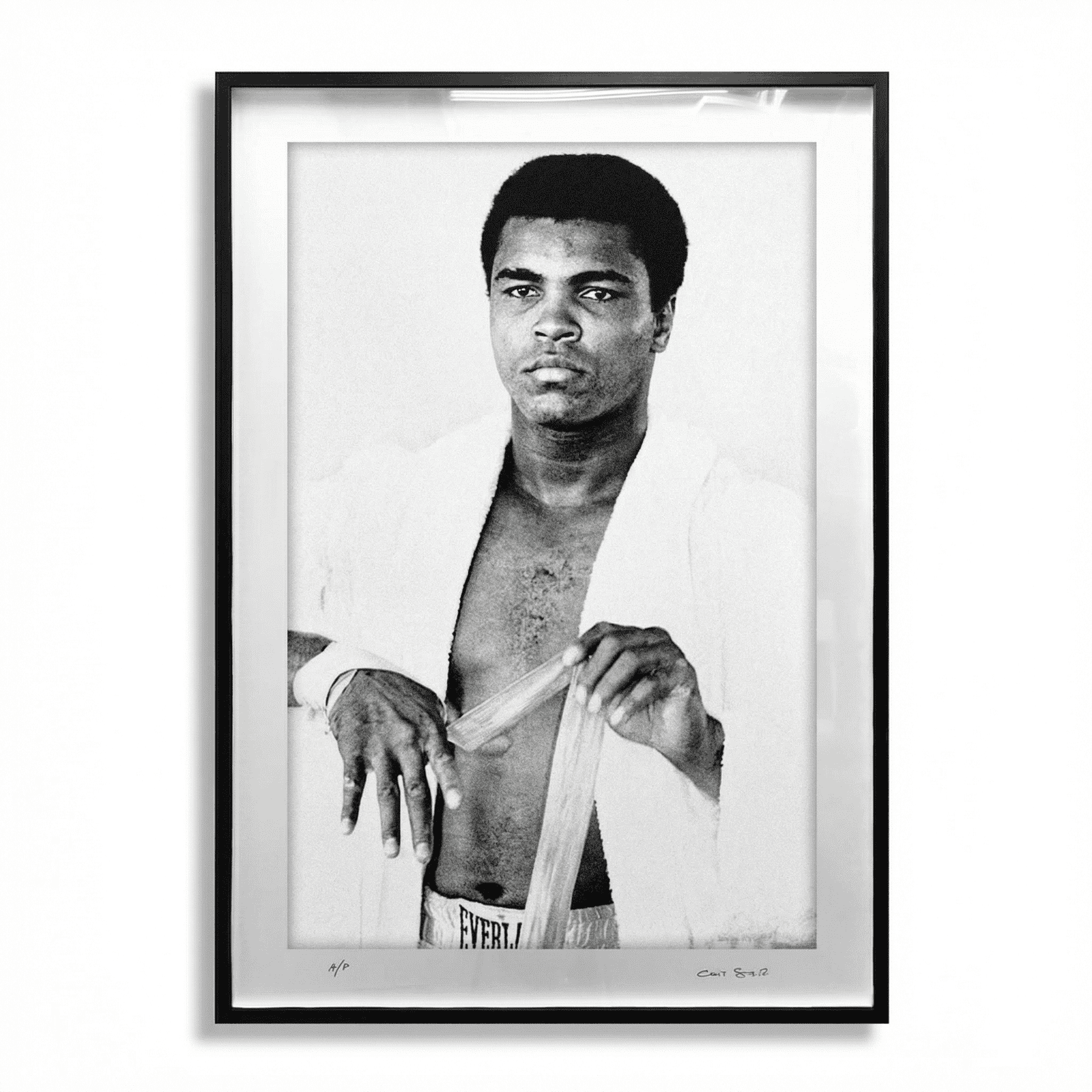This striking black-and-white Muhammad Ali print is offered in two distinguished editions, crafted with museum-quality precision.